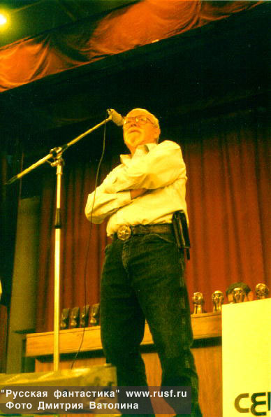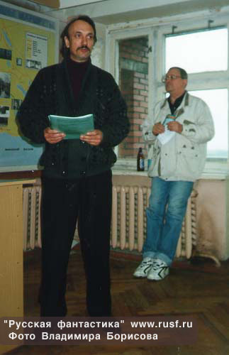 | Успенский с призом "Интерпресскон" | Лукин на открытии "Интерпресскона" |