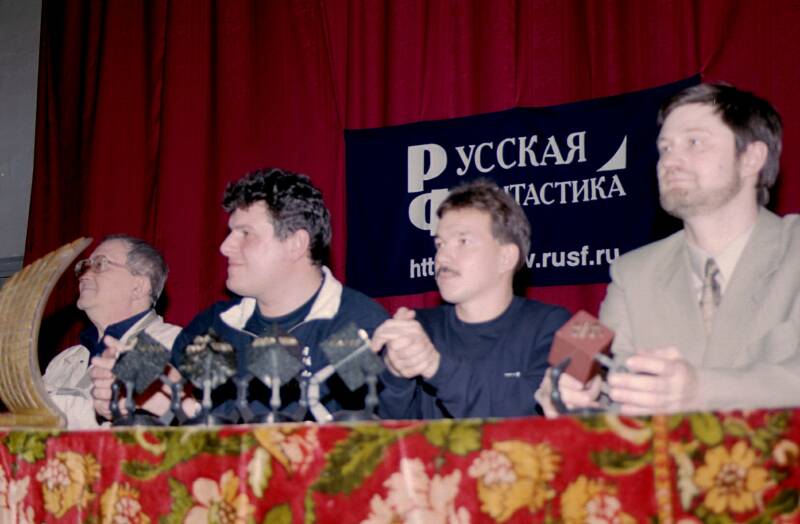 Открытие "Интерпресскона-2001". В президиуме - Борис Стругацкий, Константин Гришин, Дмитрий Ватолин, Александр Олексенко.