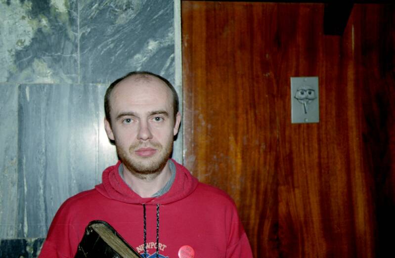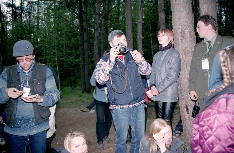 | Вадим Чиков готовится к фотосьемке открытия памятника творчеству братьев Стругацких.
