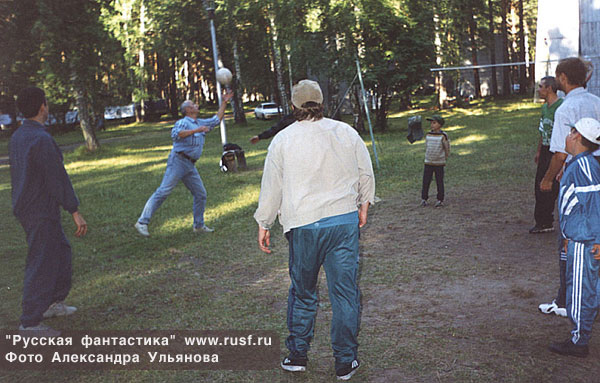 Василий Головачев показывает всем, как надо играть в волейбол... Владимир показывает Василию Головачеву, как не надо. Андрей Синицин. Обратите внимание на указатель.
