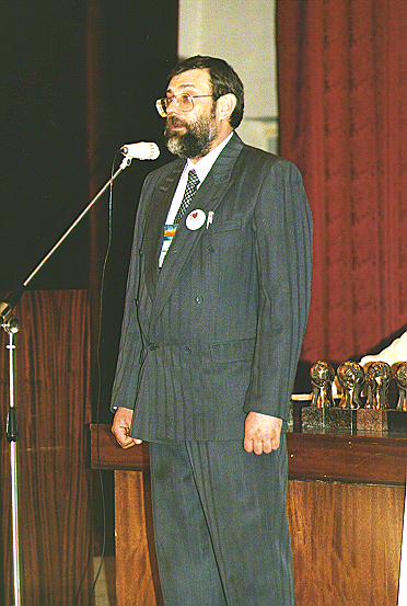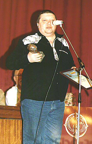 | Успенский с призом "Интерпресскон" | Лукин на открытии "Интерпресскона" |