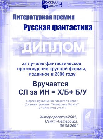 | Специальный диплом конференции "Интерпресскон-2001" | Диплом премии "Руская фантастика-2001" |