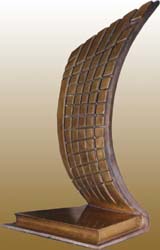 Автор всех макетов и значков В. Савватеев. На полученные деньги профессиональному скульптору была поставлена задача - исходя из общей идеи премии и полученных эскизов, сделать макет. Сначала был подготовлен макет из пластилина размером сантиметров 5 (он критиковался и дорабатывался). Через полтора месяца был сделан макет из герметика - уже в натуральную величину, но еще без деталей (он также дорабатывался). Еще через месяц был сделан гипсовый вариант, по которому потом выливалась бронза. Благодаря тому что все этапы были разнесены по времени, все идеи "отстаивались", каждый раз макет анализировался свежим взглядом. И результат радует глаз!