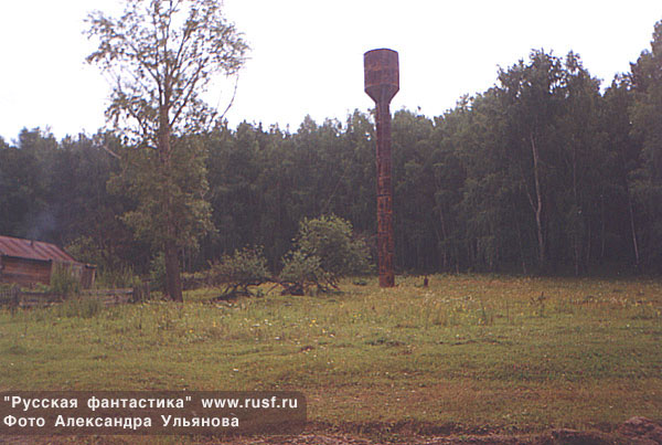 А.Громов на ходулях. Ни одного кедра мы так и не увидели, однако увидели эту водонапорную башню. Её, кстати, построили из цельного куска дерева! Местный