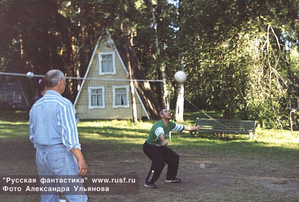 Василий Головачев показывает всем, как надо играть в волейбол... Владимир показывает Василию Головачеву, как не надо. Андрей Синицин. Обратите внимание на указатель.