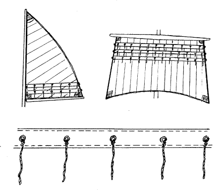 Видите — передний край треугольного паруса пришнурован к рейку, а задний и нижний свободны.