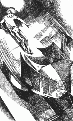 Верхний конец радиального желоба вделан был в парапет на одном уровне с бетоном (рядом — эмалевая табличка с числом 59). Первые несколько метров титановая отшлифованная полутруба уходила вниз почти отвесно. Витька потоптался, вздохнул, как всегда, перед “стартом”. Впрочем, это — лишь две секунды. А на третьей он подпрыгнул, выкинул вперед ноги и ухнул в желоб.